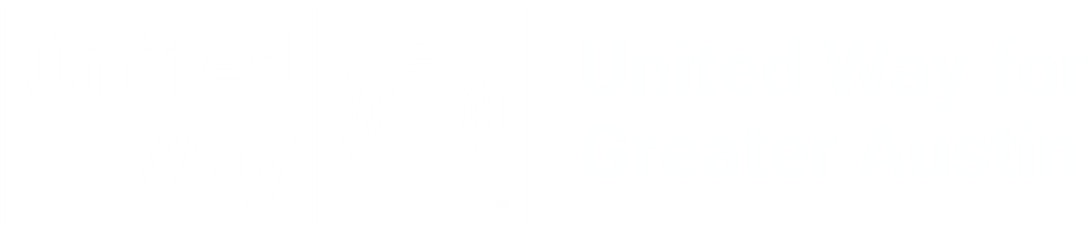Logo of United Way for Greater Austin featuring a hand holding a circular emblem with a small person inside.